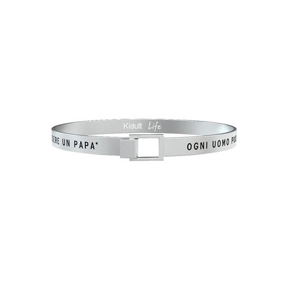Bracciale in acciaio satinato 316L, lunghezza 19 cm. Scritta OGNI UOMO PUO'…PAPA'