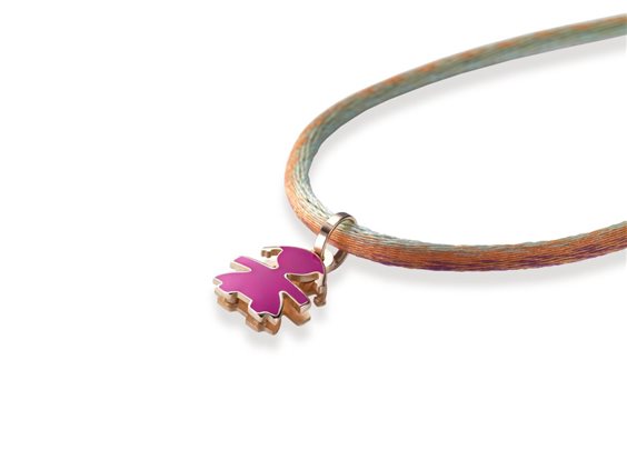 Ciondolo bombato Bimba in Oro Rosa 9 Kt e smalto viola, con cordino degradè regolabile di 80 cm. Altezza: 1 cm Larghezza: 0,90 cm