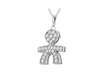 Collana Le Bebè in Oro Bianco 18 ct con pendente LeBebé maschietto versione Pavè Grande. Gioiello LE Bebè impreziosito da pavè di Diamanti, corredato di catenina in oro e personalizzabile con l'incisione del nome. Altezza 1,90 cm, Larghezza 1,20 cm.