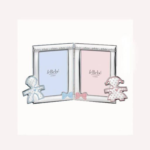 Cornice Le Bebè, Linea: Sagoma, Sagoma Maschietto Femminuccia Argento Smaltato Celeste e Rosa. Referenza: LB 207/02. Cornice doppia. Argento bilaminato. Sagome argento smaltato. Portafoto int.10x15 cm.