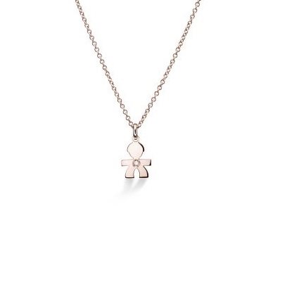 Ciondolo con catena sagoma bimbo in oro giallo 18kt con diamante 0,003 ct Altezza: 0,7 cm. Larghezza: 0,6 cm.