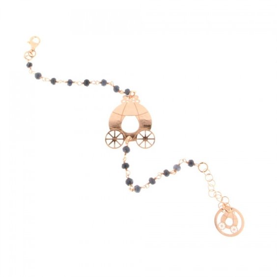 Bracciale in argento rosato con pietre nere. Lunghezza cm. 17 adattabile a 20 cm.