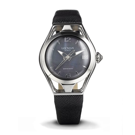 Il Montecristo Lady nasce con cassa in acciaio AISI 316L e fondo in titanio: una struttura esterna abbraccia i due corpi centrali, unendoli al cinturino. L’orologio è equipaggiato di un movimento solo tempo al quarzo high-tech con batterie di nuova generazione, progettate per durare fino a tre anni. La corona a scatto garantisce un’impermeabilità di 100 metri (10 ATM). Il vetro minerale è reso più duro e resistente da uno speciale trattamento zaffiro. Il quadrante in madreperla grigia naturale, presenta indici e numeri arabi. Il cinturino è in saffiano grigio con chiusura deployante dotata di pulsanti di sicurezza.