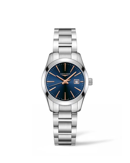 orologio acciaio donna con quadrante blu e indici rosa Referenza L2.286.4.92.6