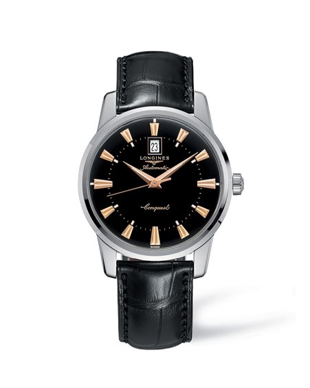 Orologio automatico unisex, cassa acciaio, quadrante nero con indici e lancette oro rosa, cinturino in pelle nero. vetro zaffiro antigraffio. Disponibile con scatola e garanzia originale. Referenza L1.645.4.52.4