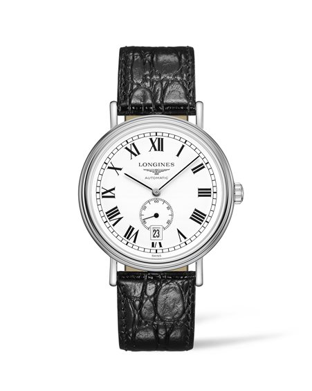 L’eleganza unita alla semplicità La collezione Présence rimane fedele allo stile classico, all’eleganza senza tempo che caratterizza la brand svizzera Longines. Le linee sobrie della cassa, verranno apprezzate sia dagli uomini che dalle donne. Decorato da numeri romani, il quadrante abbina l’eleganza alla leggibilità. Queste caratteristiche rendono questa linea una delle collezioni più importanti tra quelle proposte da Longines. CASSA Forma Rotonda Materiale Acciaio inossidabile e rivestimento pvd giallo Vetro Vetro zaffiro antigraffio Fondello Fondello trasparente in vetro zaffiro Dimensioni Ø 40.00 mm Impermeabilità Impermeabile fino a 3 bar QUADRANTE E LANCETTE Colore Bianco mat Giro delle ore Numeri romani dipinti Lancette Lancette nere MOVIMENTO E FUNZIONI Tipo di movimento Automatico Calibro L892 Descrizione del movimento Movimento meccanico a carica automatica con frequenza di 25.200 alternanze orarie e riserva di carica di 64 ore Funzione Ore, minuti, piccoli secondi a ore 6 e data CINTURINO Materiale Cinturino in pelle Colore Nero Fibbia Con fibbia Referenza L4.905.4.11.2