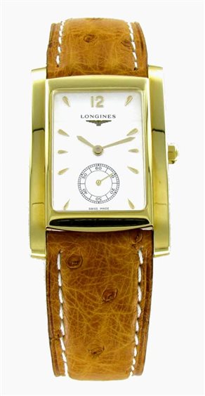 OROLOGIO LONGINES DONNA COLL. DOLCE VITA RETTANGOLARE CASSA IN ORO 18 KT CINTURINO IN PELLE MARRONE CHIARO