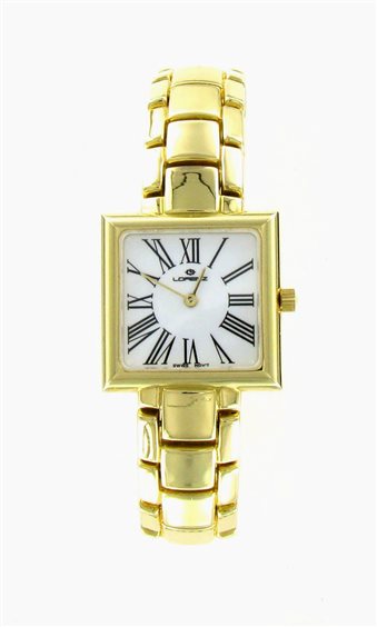 Orologio da donna Lorenz cassa quadrata 22,5 x 22,5 mm, quadrante bianco con numeri romani dipinti, cassa e bracciale in oro giallo