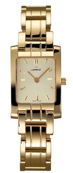 Orologio da donna Lorenz con cassa e bracciale in oro giallo 18kt, cassa rettangolare 20x29mm