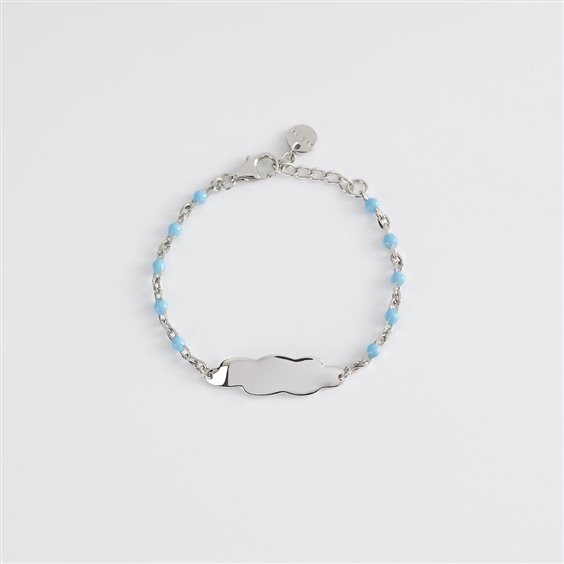 Bracciale argento 925/°°° inserti catena con smalto azzurro e piastra 25.10x7.60 mm, lunghezza regolabile da 12 a 14 cm