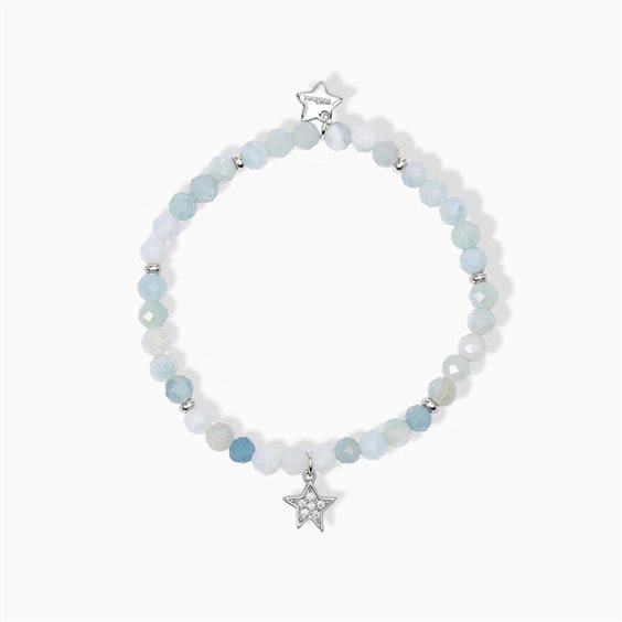 Bracciale argento 925/°°° elastico rodiato con amazzonite Ø 3.5 mm e stella pendente con zirconi Ø 1.25 mm, lunghezza 15 cm