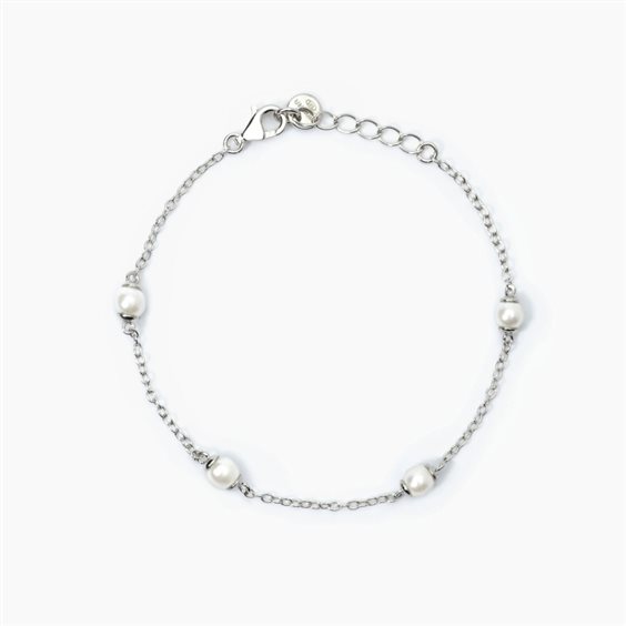 Bracciale in argento 925/°°° rodiato con catena forzatina 1.5 mm e perle conchiglia Ø 4 mm, lunghezza regolabile da 14.5 a 16.5 cm