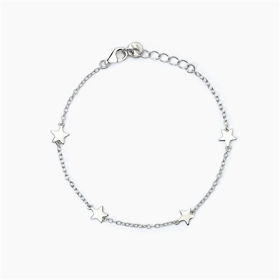 Bracciale in argento 925/°°° rodiato con catena forzatina 1.5 mm ed elementi stellina 6x5.5 mm, lunghezza regolabile da 14.5 a 16.5 cm
