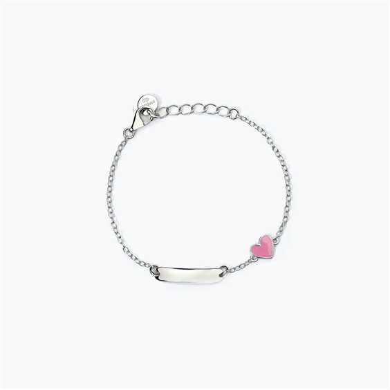 Bracciale in argento 925/°°° rodiato con catena forzatina 1.5 mm, piastra 17x4 mm ed elemento cuoricino smaltato 6.5x6 mm, lunghezza regolabile da 12 a 14 cm