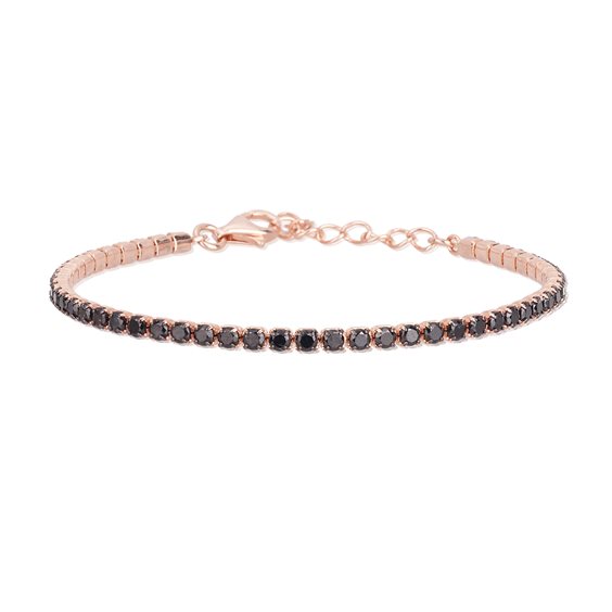 Bracciale modello Tennis in argento 925°° laminato in oro rosa con zirconi neri. Lunghezza cm. 19