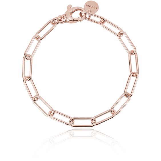 Bracciale argento rosato con maglie allungate • Chiusura con moschettone • Misura regolabile, lunghezza 20 cm • Materiale: Argento 925 Rosato