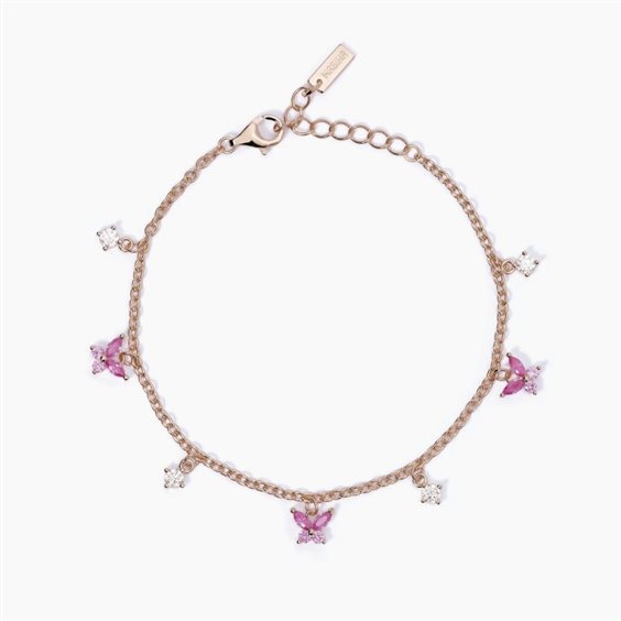 Bracciale Mabina in argento 925 rosè, con farfalle pendenti in zircone rosa e zirconi bianchi Lunghezza da 16 a 19 cm