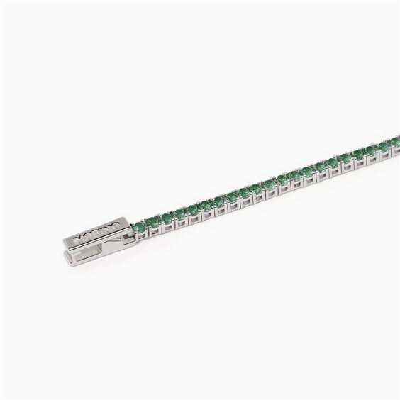 Bracciale donna , modello tennis , argento 925 rodiato , lunghezza cm 18 , chiusura a pinza , smeraldi sintetici incastonati con griffe.