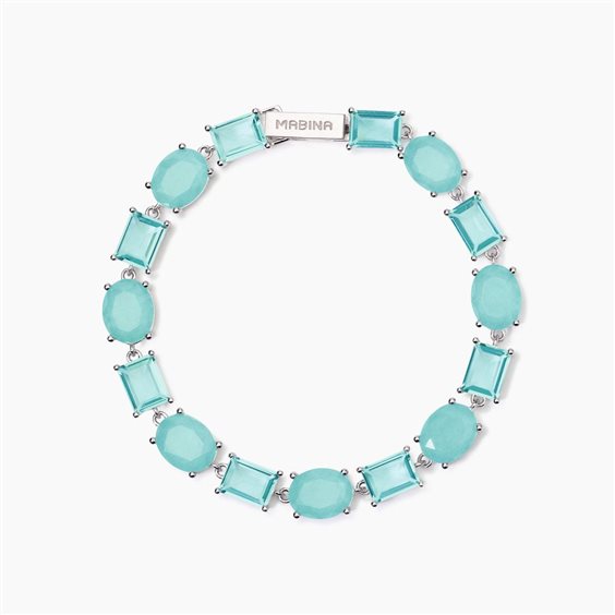 Bracciale in argento 925 rodiato. Elementi in fusion stone e cristallo di rocca. Misura cm 18.