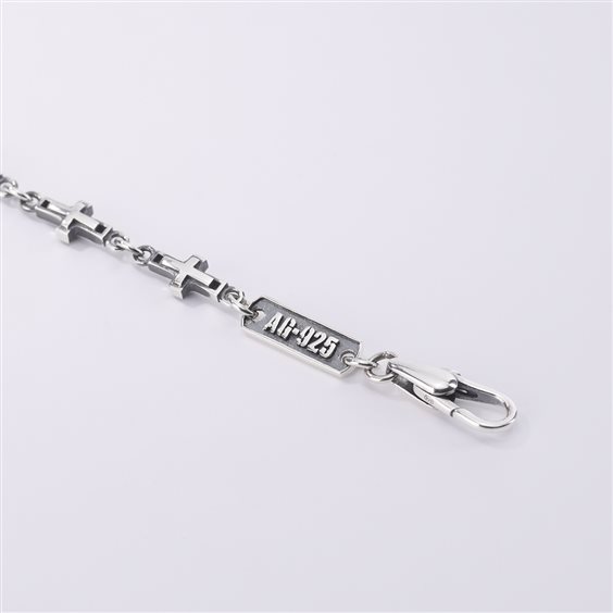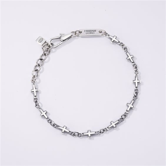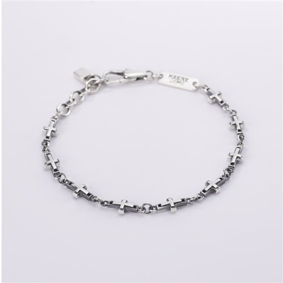 Bracciale in argento brunito con croci. • Chiusura con moschettone • Misura regolabile, lunghezza da 19 a 21 cm • Materiale: Argento 925 • Codice: 533425