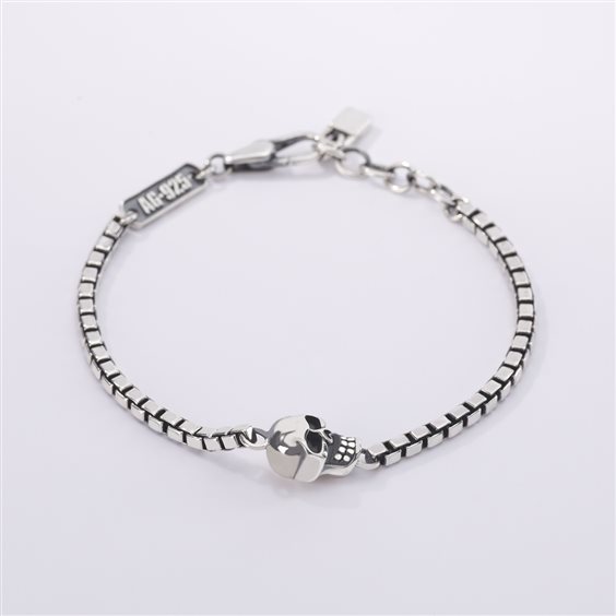 Bracciale in argento 925. Catena maglia veneziana con teschio centrale. Misura regolabile da cm 19 a cm 21.