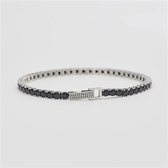 Bracciale tennis argento 925/°°° rodiato e zirconi neri. Chiusura pinza a molla. Misura cm 19.