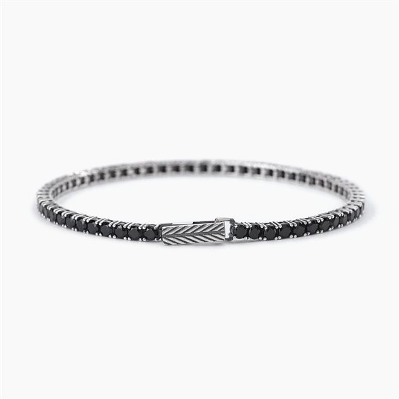 Bracciale argento 925/°°° rodiato e zirconi neri. Chiusura pinza a molla. Misura cm 19.