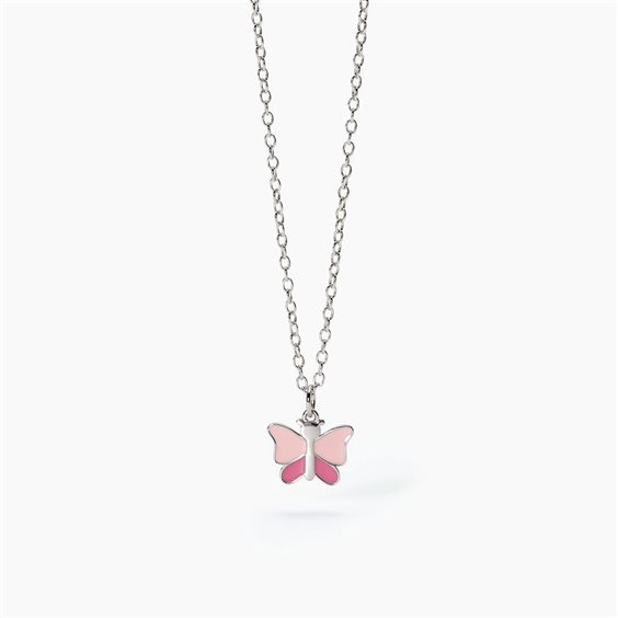 Girocollo in argento 925/°°° rodiato con catena forzatina 1.5 mm e pendente farfallina smaltato 10.5x8 mm, lunghezza regolabile da 38 a 41 cm