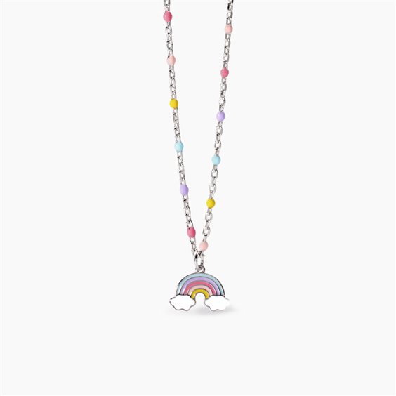 Girocollo in argento 925/ººº rodiato con catena forzatina 1.5 mm, inserti e pendente arcobaleno 11.5x7.5 mm smaltati, lunghezza regolabile da 35 a 39 cm