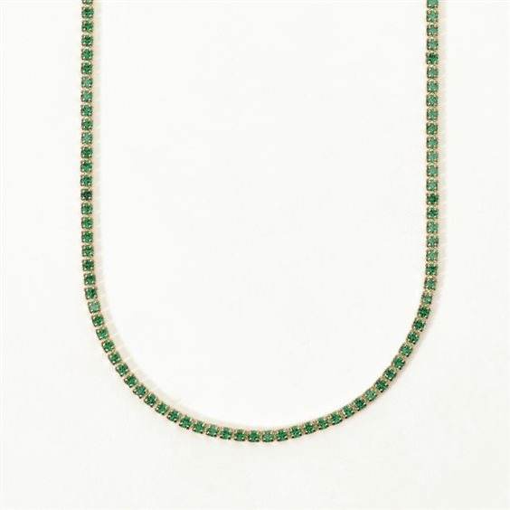 Collana Mabina tennis in argento dorato con zirconi verdi. Lunghezza collana da 36 a 41 cm.