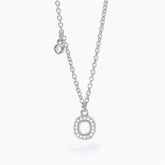 Girocollo in argento con catena forzatina e ciondolo a forma di lettera B con zirconi. • Diametro degli zirconi: 1 e 2 mm • Dimensioni della catena: 2 mm • Misura regolabile, lunghezza da 38 a 42 cm • Materiale: Argento 925, Zirconi