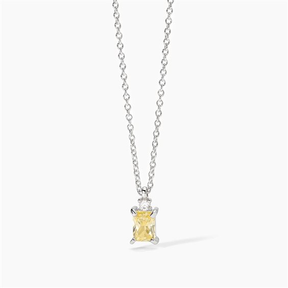 Girocollo in argento 925/°°° rodiato con catena forzatina 1.5 mm, zirconi Lemon taglio princess 5x7 mm e bianco Ø 2.5 mm, lunghezza regolabile da 40 a 45 cm