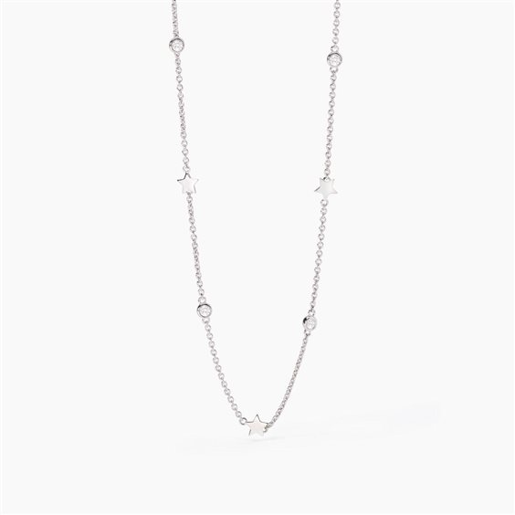 Girocollo in argento 925/ººº rodiato con catena forzatina 1.5 mm, elementi stella 5.5x6 mm e zirconi Ø 2.5 mm, lunghezza regolabile da 38 a 42 cm