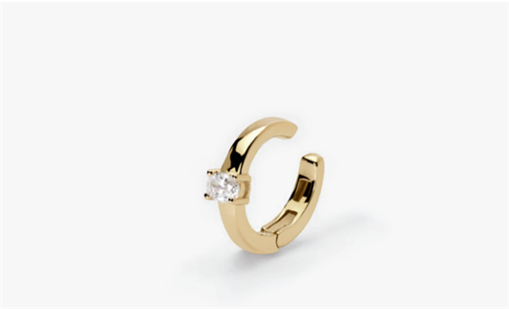 Orecchino ear cuff argento 925/°°° dorato con zircone bianco ovale 3x4 mm, apertura a molla 3 mm, Ø 14x16 mm