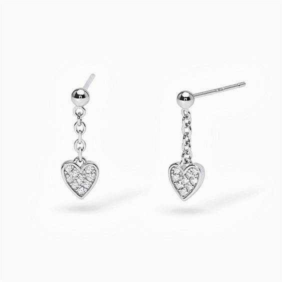 Orecchini in argento 925/°°° rodiato con cuori pendenti e zirconi bianchi Ø 1.25 mm
