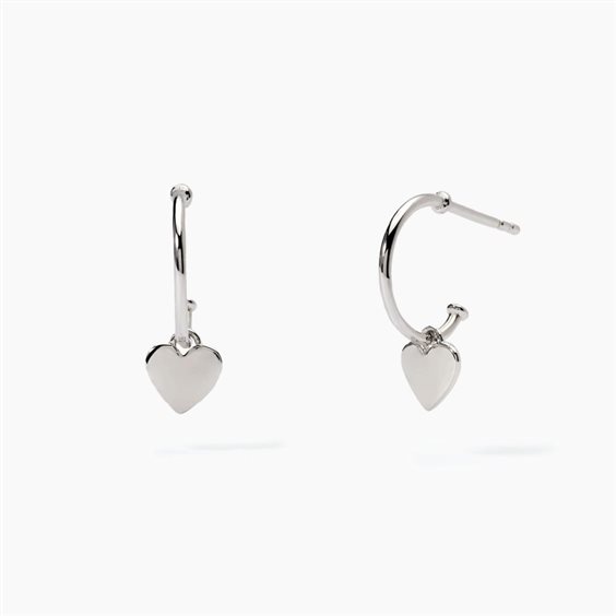 Orecchini in argento 925/°°° rodiato con cerchio Ø 11 mm e ciondolo cuoricino 6.5x6 mm, lunghezza totale orecchino 1.89 cm