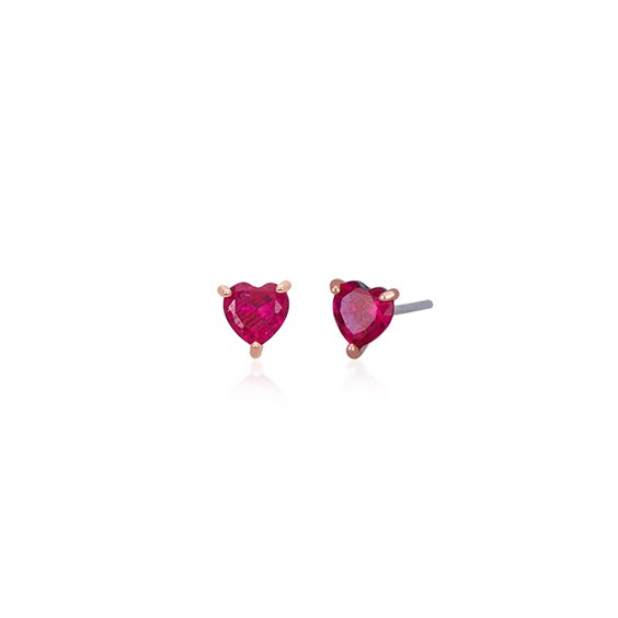 Orecchini in Argento 925/°°°, Galvanica Oro Rosè e Rubino Sintetico a Cuore