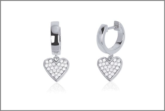 Orecchini in argento 925/°°° con ciondolo cuore 7.8X8 mm e zirconi Ø 1.3 mm, Ø esterno 12 mm, lunghezza 2 cm