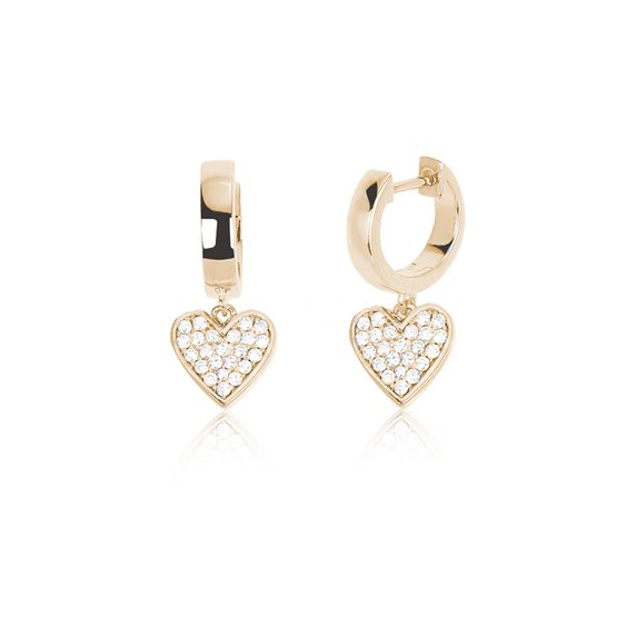Orecchini argento 925/°°° dorato con ciondolo cuore 7.8x8 mm e zirconi bianchi Ø 1.3 mm, Ø esterno 12 mm, lunghezza 2 cm