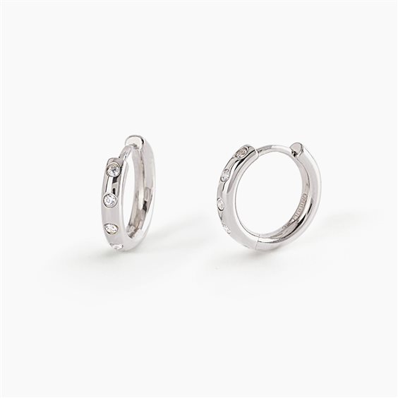 Orecchini a cerchio in argento con zirconi. • Diametro degli orecchini: 15 mm • Materiale: Argento 925, Zirconi