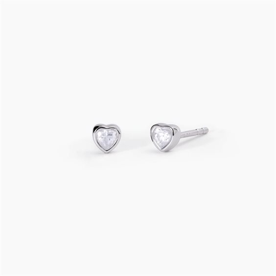 Orecchini in argento 925/°°° rodiato con zirconi bianchi taglio cuore 4x4 mm