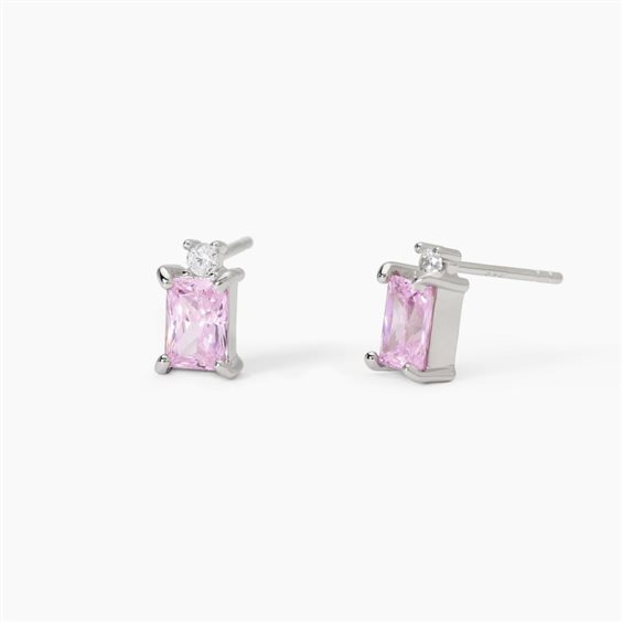 Orecchini in argento 925/°°° rodiato con zirconi rosa taglio princess 5x7 mm e bianchi Ø 2.5 mm