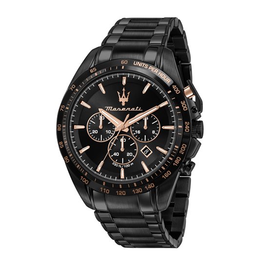I segnatempo firmati dal Tridente racchiudono tutta l'esperienza tecnica e la maestria progettuale Maserati. Modelli esclusivi ed inimitabili, dal design rigoroso e dalle funzionalità eccezionali. Materiale e finitura cassa: Acciaio, Lega di metallo, Misura cassa: 45mm, Spessore cassa: 12,00, Finitura cassa: Lucido, Satinato, Colore cassa: Nero, Vetro: Vetro minerale, Materiale cinturino: Metallo, Colore cinturino: Nero, Chiusura: Fibbia deployante con pulsanti, Water resistant: 10 atm.