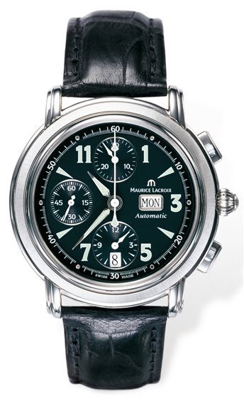 Maurice Lacroix Masterpiece Croneo Per l'uomo sportivo e indipendente. Il Masterpiece Croneo si distingue per il suo look sportivo e per le sue prestazioni tecniche d'alta qualità. L'armoniosa composizine di raffinati dettagli gli conferisce inoltre una personalità assolutamente unica. Il cronografo automatico è animato da una versione rifinita del celebre Calibro Valjoux 7750. Il movimento automatico decorato a mano con viti in acciaio brunito e 26 rubini è visibile attraverso il vetro zaffiro del fondello. Il design esterno dell'orologio è degno del nobile meccanismo interno: Il quadrante e le lancette mostrano un perfezionismo caratterizzato da un attenzione particolareper i dettagli e l'ottima leggibilità dei diversi indicatori (compresa una pratica scala tachimetrica per la registrazione diretta delle velocità medie) aggiunge armonia ad un design armonioso ed elegante. Il Croneo è un orologio per colui che, sicuro di sé, fa sempre ciò che vuole. Il Valjoux 7750, il movimento cronografico automatico creato nel 1973, è dotato di una funzione cronografo con precisione di lettura di 1/8 di secondo, due contatori di 30 minuti e 12 ore e indicazione della data e del giorno della settimana. é considerato uno dei più quotati cronografi attualmente indisponibili sul mercato grazie soprattutto alla sua precisione e alla sua robustezza ineguagliabili. Superfici elegantemente decorate, viti in acciaio brunito, 26 rubini, sistema di scappamento e oscillazione della più alta qualità, 5 posizioni di regolazione distinguono il movimento rifinito ML 67 Croneo dal Calibro Valjoux di base.