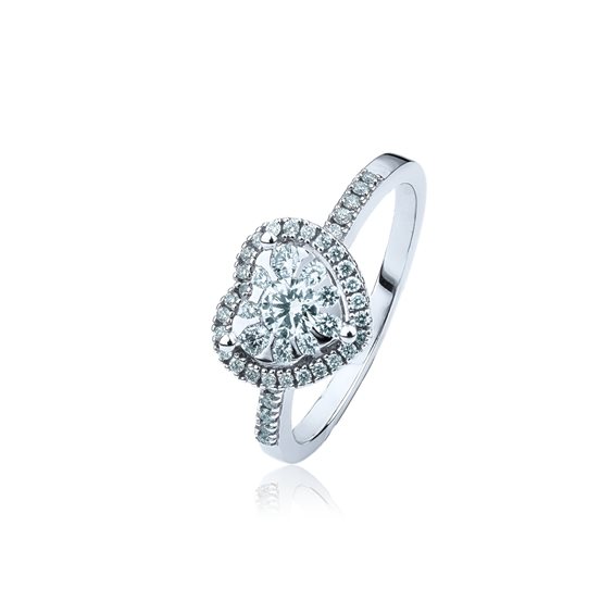 Anello in Oro Bianco 18kt a forma di cuore con Diamanti 0,23ct G Vs e controno 0,08ct G Vs