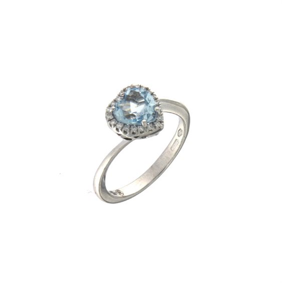 Anello Mirco Visconti in oro bianco 18kt con Acquamarina taglio cuore 1,19 ct e contorno diamanti 0,09 ct G Vs