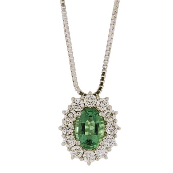 Girocollo Mirco Visconti in oro bianco 18kt con Smeraldo taglio ovale 0,79ct COLOM. e contorno di diamanti 0,50ct G Vs