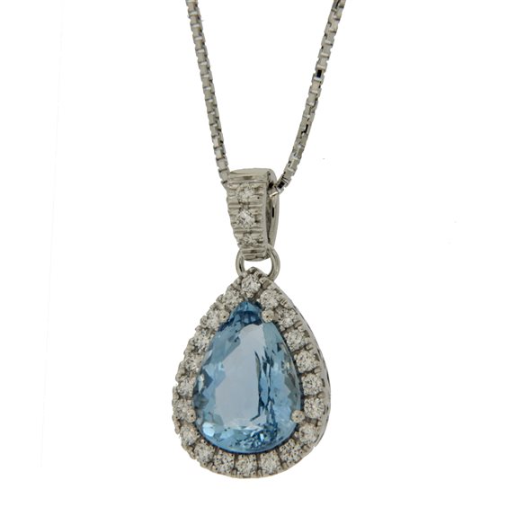Girocollo Mirco Visconti in oro bianco 18kt con Acquamarina taglio a goccia 2,91ct e contorno di diamanti 0,29ct G Vs