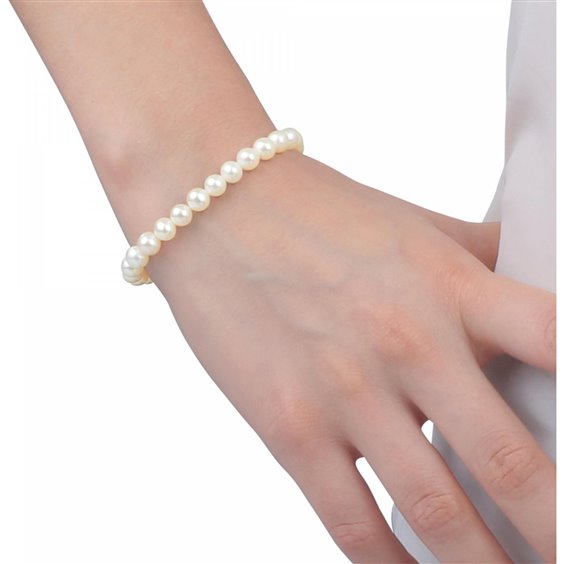 Bracciale donna , perle naturali bianche coltivate mm 6-6.5 , lunghezza cm 20 regolabile fino a cm 16 , chiusura in argento 925%. Immagine indicativa , la confezione può variare di forma e colore.
