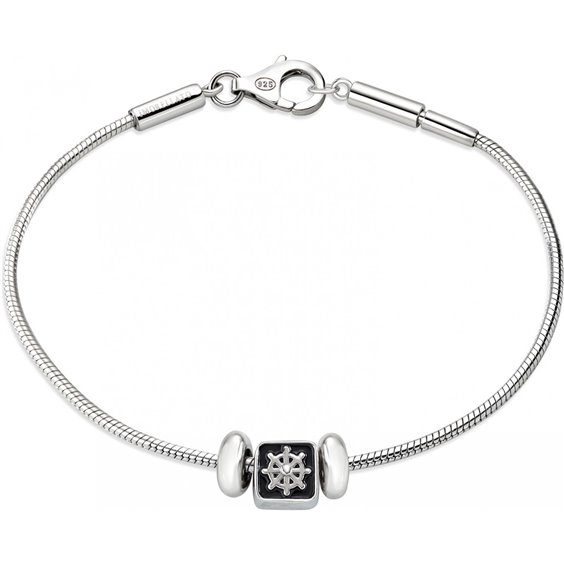 Bracciale uomo , argento 925% , maglia coda di topo , lunghezza cm 22 regolabile fino a cm 19 , elemento drops , con timone in smalto nero. Scatola e garanzia originali , immagine indicativa , la confezione può variare di forma e colore.